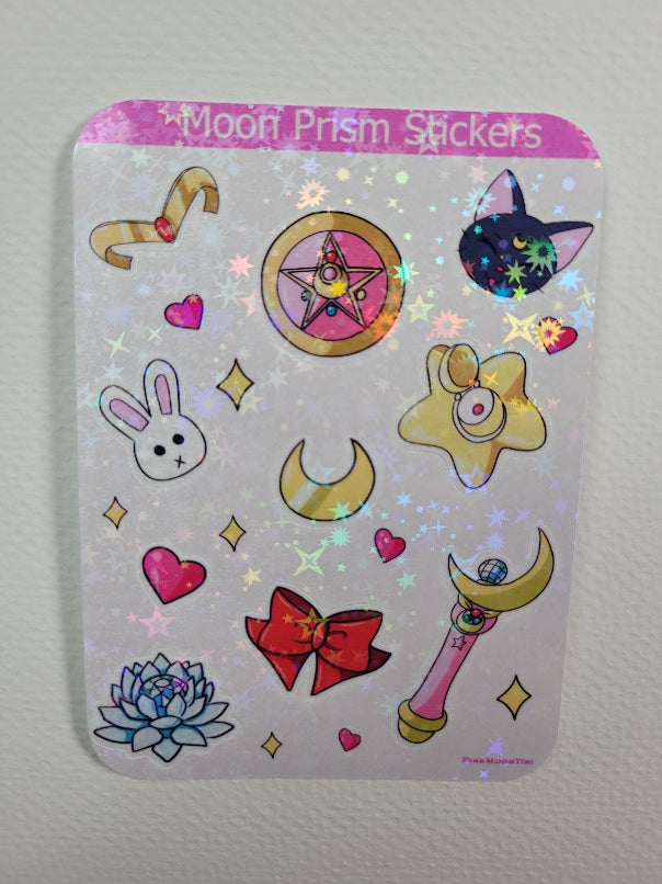This Magic girl sticker sheet is perfect for adding sparkle and enchantment to any craft project! It contains 10 individual holographic stickers, sure to captivate any magical girl fan. Show off your creativity and make something special!