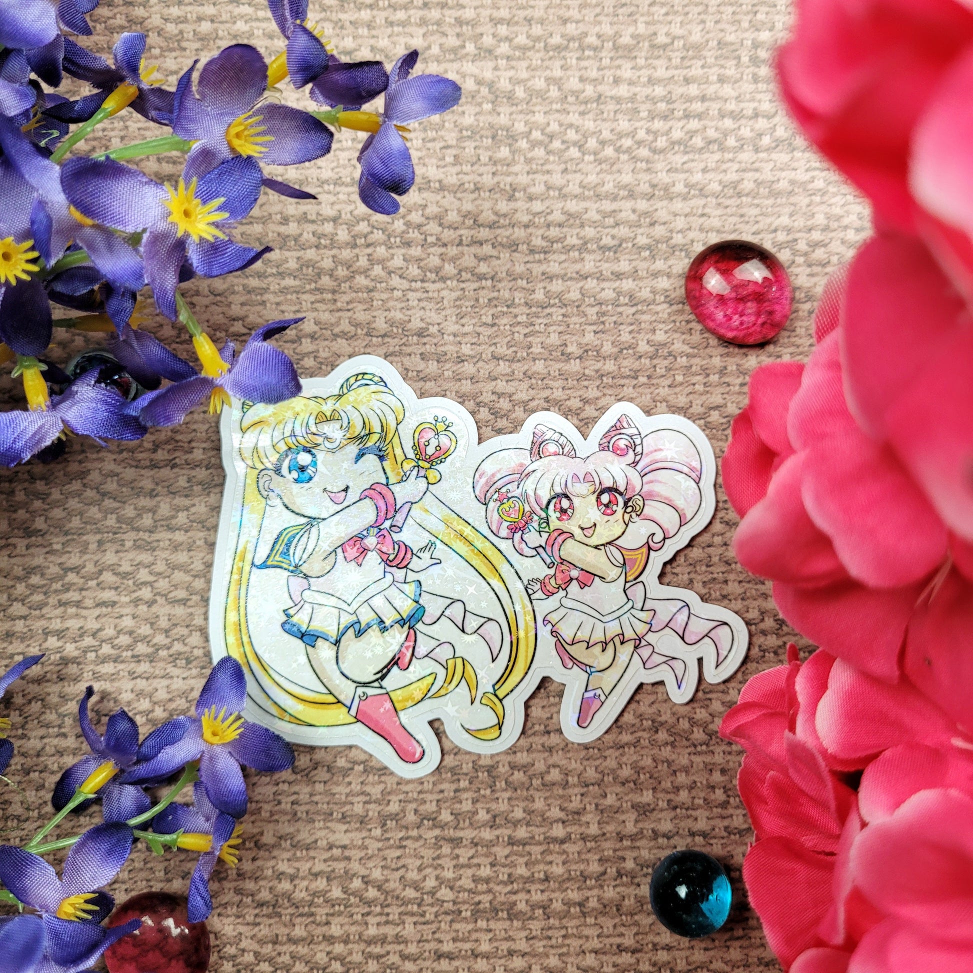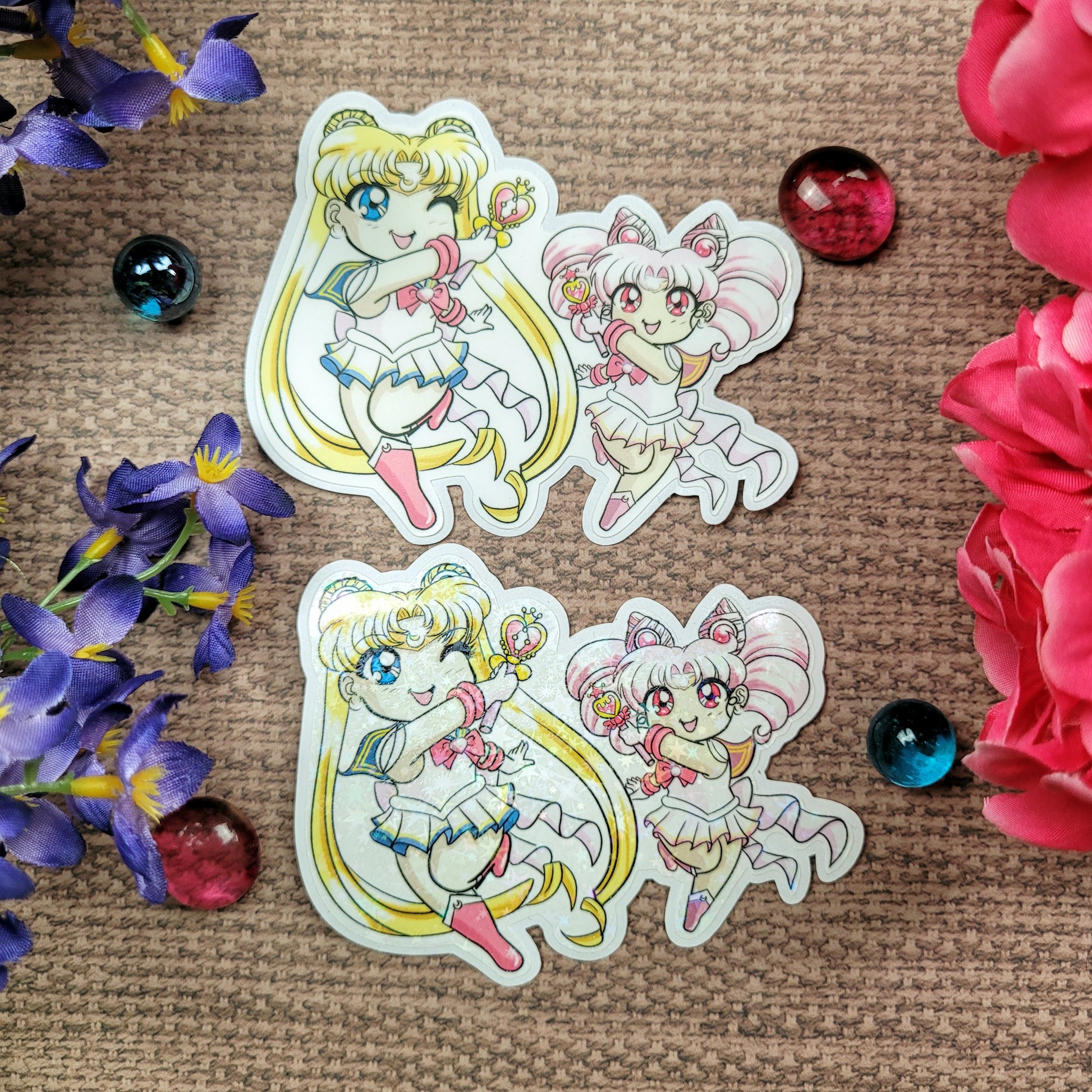 Our vinyl stickers are made of high quality glossy vinyl that are water resistant and tear resistant. Perfect for both indoor and outdoor surfaces such as water bottles, phone cases, laptops, and anything else!